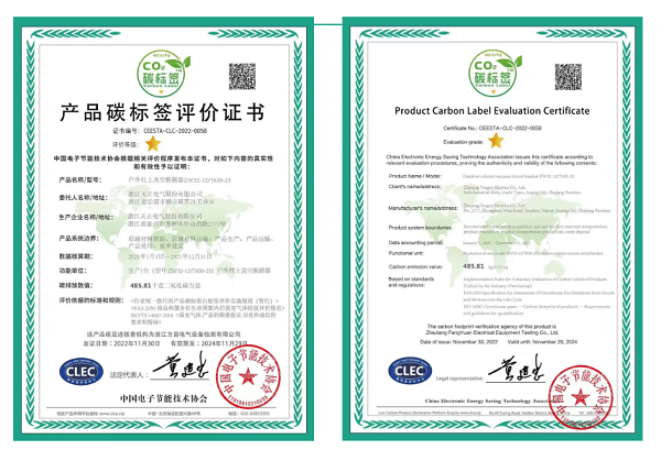 此次碳标签评价表明,蘑菇🍄视频入口电气生产的户外柱上真空断路产品,在碳排放大数据方面按国际通行惯例推进,并具备一定的优势,对促进产品全供应链的温室气体减排,达成“双碳”目标具有积极作用。此外,蘑菇🍄视频入口还获中国电子节能技术协会颁发的低碳产品供应商证书。